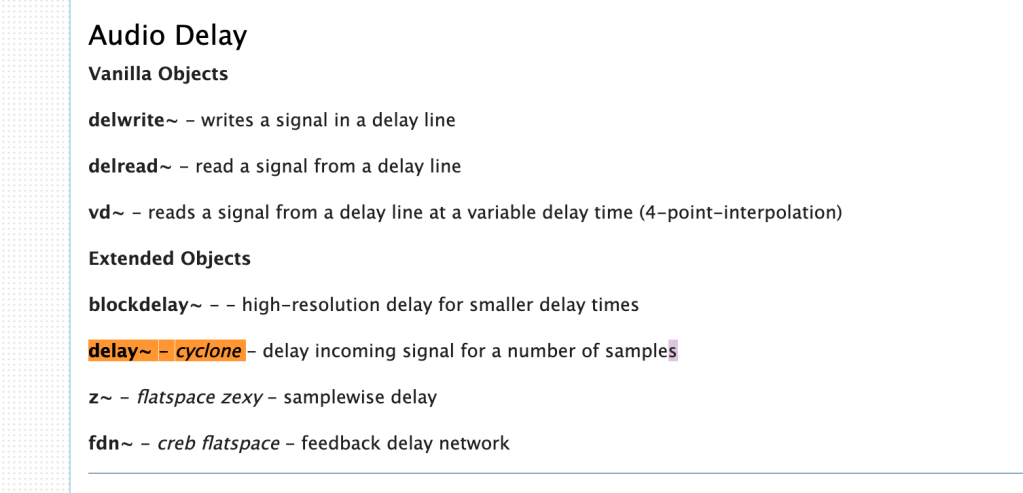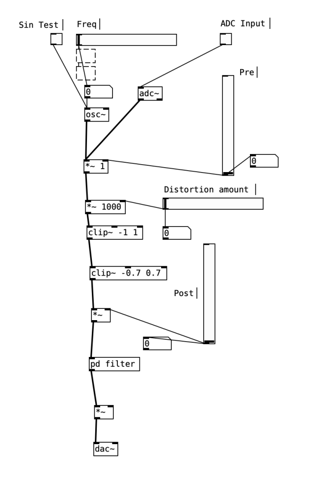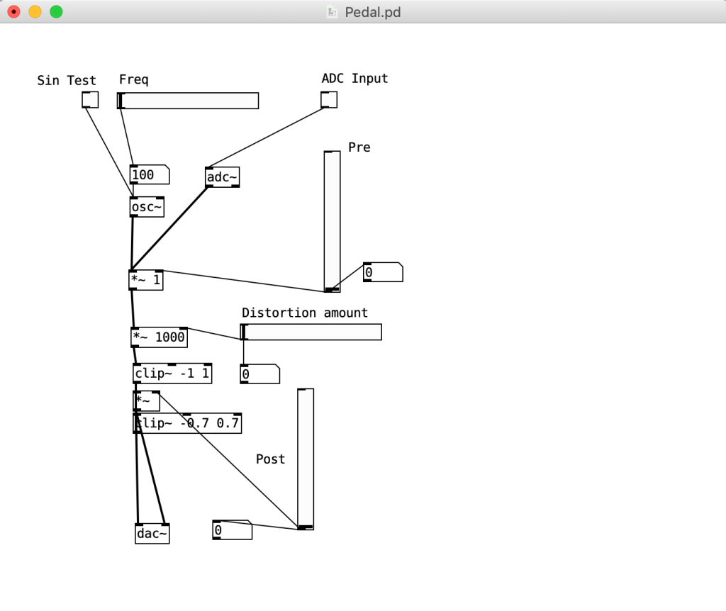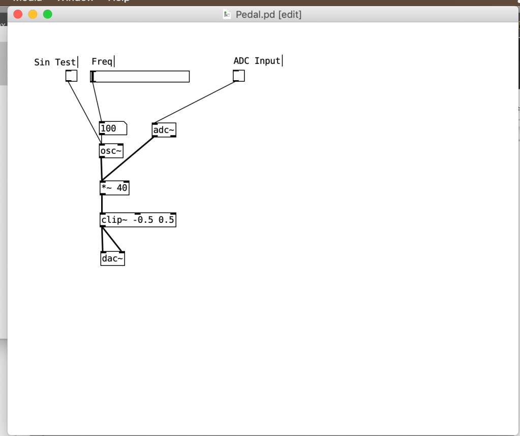 Started working on the Pure-Data patch with what I have right now. As I want to make it a multi-effect pedal, I will have to create a way to change the parameters of the effects on the fly while the performer is performing. Maybe I can use my phone to control these certain parameters so I won’t need to carry my laptop along with my pedal. Also have to find a way to change between effects on the fly as well.